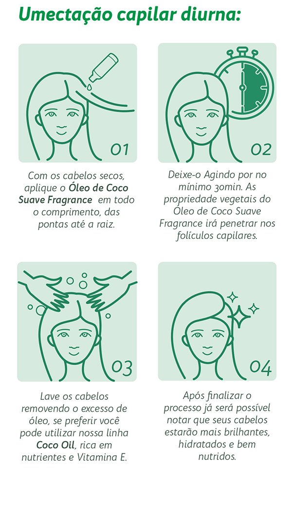 A umectação com óleo vegetal pode ser feita durante o dia ou à noite. No primeiro caso, basta aplicar o produto em todo o comprimento dos fios, deixá-lo agir por cerca de 30 minutos e lavar normalmente. Já na umectação noturna, o óleo vegetal deve ser mantido nos cabelos durante toda a noite e lavado apenas pela manhã.